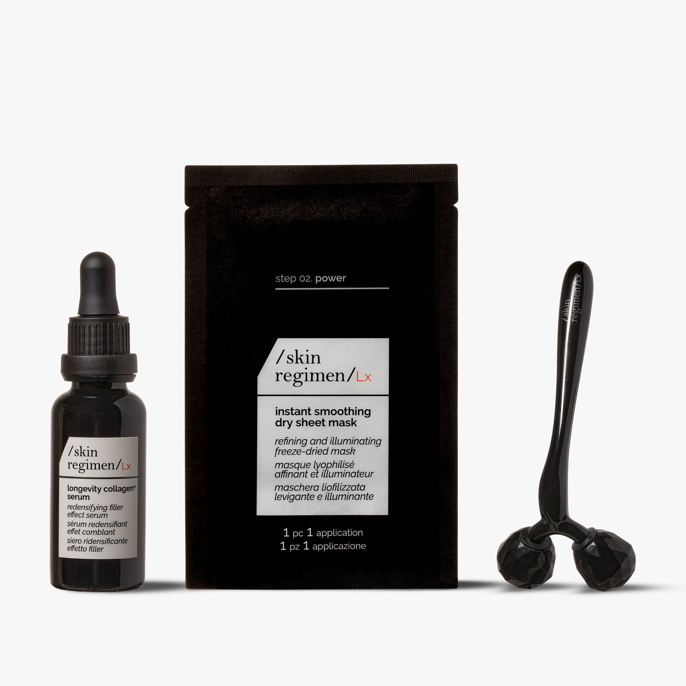 Ontdek de /skin regimen/Lx Pro-Collagen Routine – een 3-stappenbehandeling voor thuisgebruik die je huid dagelijks ondersteunt met collageenverzorging.