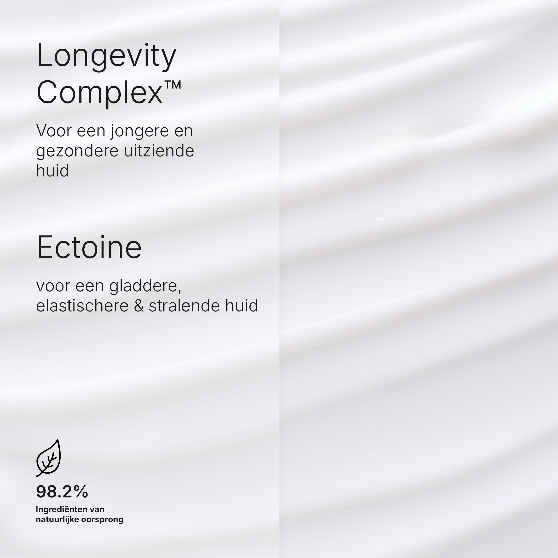 Met natuurlijke extracten van wilde indigo, mirtebes en spinazie in combinatie met carnosine. Gaat wetenschappelijk bewezen de effecten van het exposoom (blootstelling aan de zon, stadsvervuiling, onevenwichtige en hectische levensstijl) tegen, voor een jonger en gezonder uitziende huid.